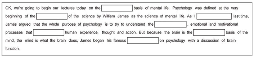 متن یک فایل صوتی با چند جای خالی نمایش داد ه می شود. بعد از گوش کردن به فایل صوتی باید کلمه های جا افتاده را در جاهای خالی بنویسید. این نوع سوال مهارت listening(گوش کردن) و writing(نوشتن) شما را می سنجد.