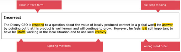 در خلاصه ی 50 تا 70 کلمه ای خود، بر اساس گرامر (قواعد دستور زبان)، املا و انتخاب لغات مناسب نمره دهی می شوید. بنابراین بعد از نوشتن خلاصه ی خود، یک الی دو دقیقه را به چک کردن جمله هایتان اختصاص دهید تا آنها را از لحاظ ساختاری مثل مطابقت فعل با فاعل، زمان فعل ها و ترتیب کلمه ها چک کنید.