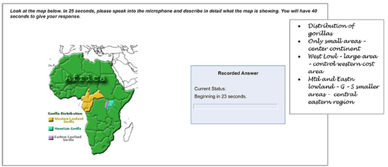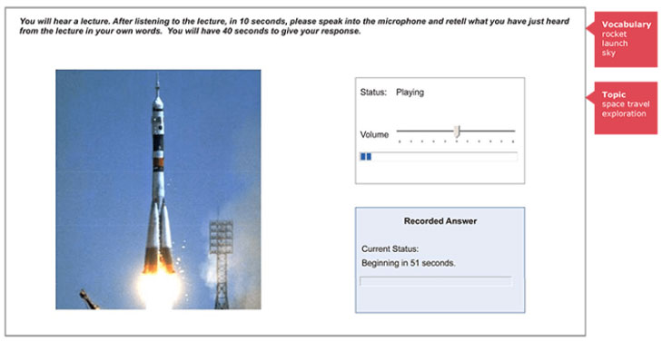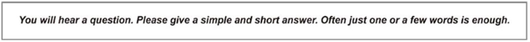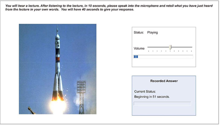 یک سوال کوتاه می شنوید و بعد از آن باکس وضعیت ضبط کلمه ی recording را نشان می دهد. به محض دیدن کلمه ی recording صحبت کنید. اگر بیشتر از 3 ثانیه صبر کنید ضبط متوقف می شود و کلمه ی recording به completed تغییر می کند که به این معنی است که شما شانس خود برای پاسخ به سوال را از دست داده اید.